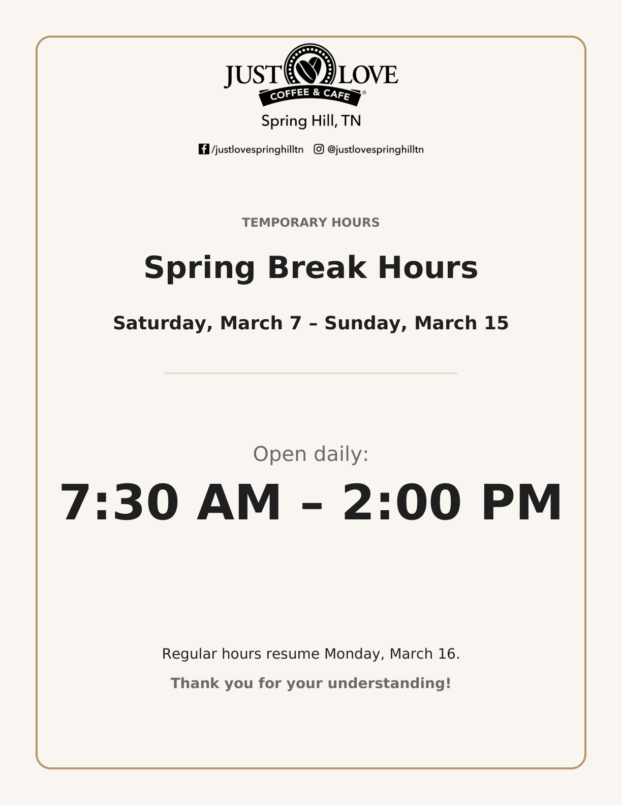 🌴☀️Spring Break Hours☀️🌴